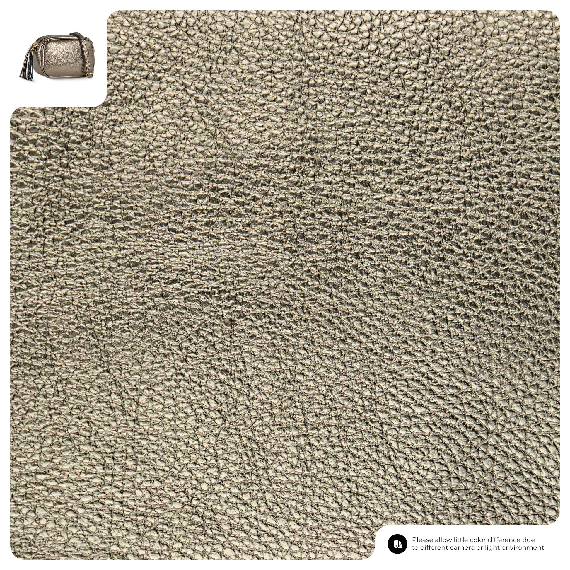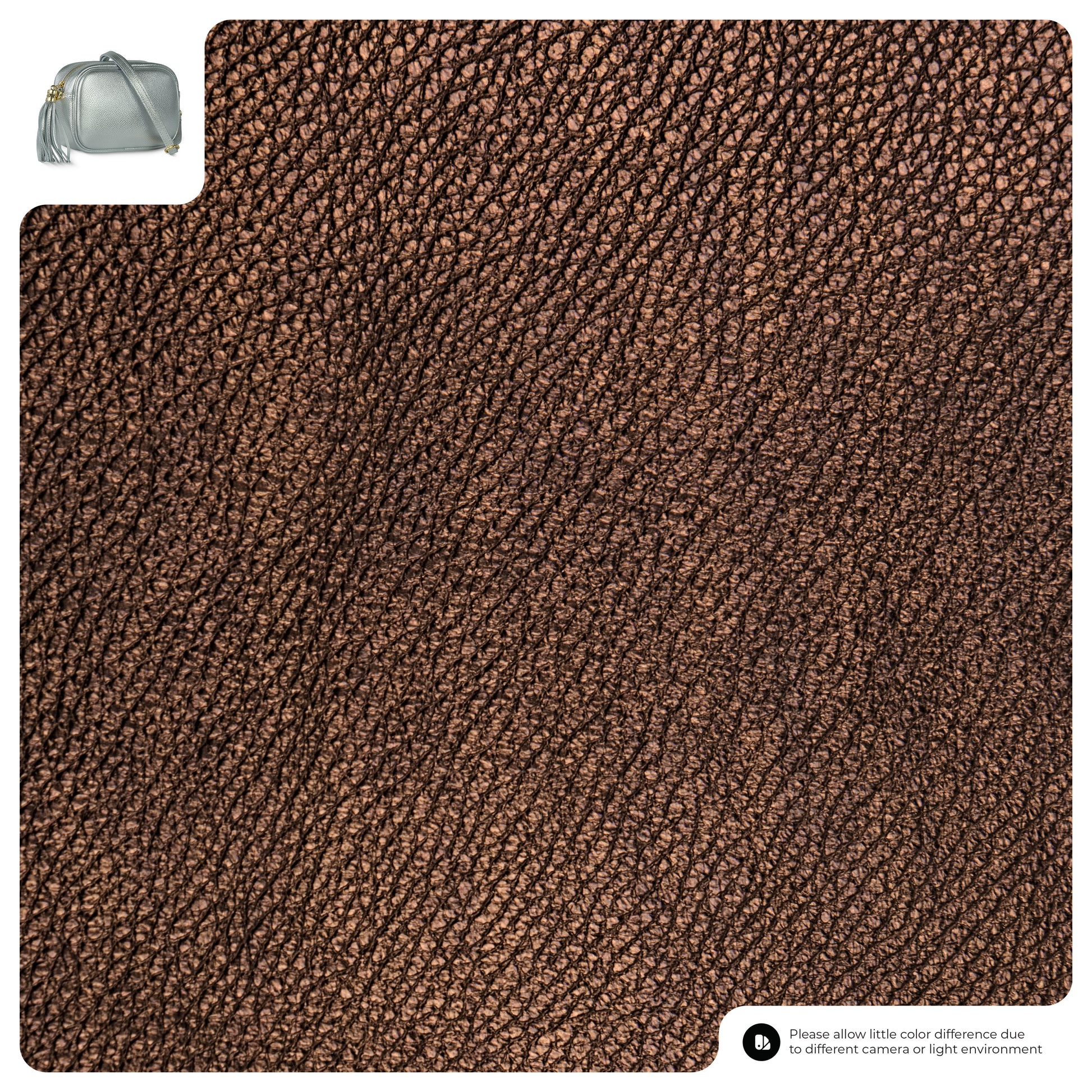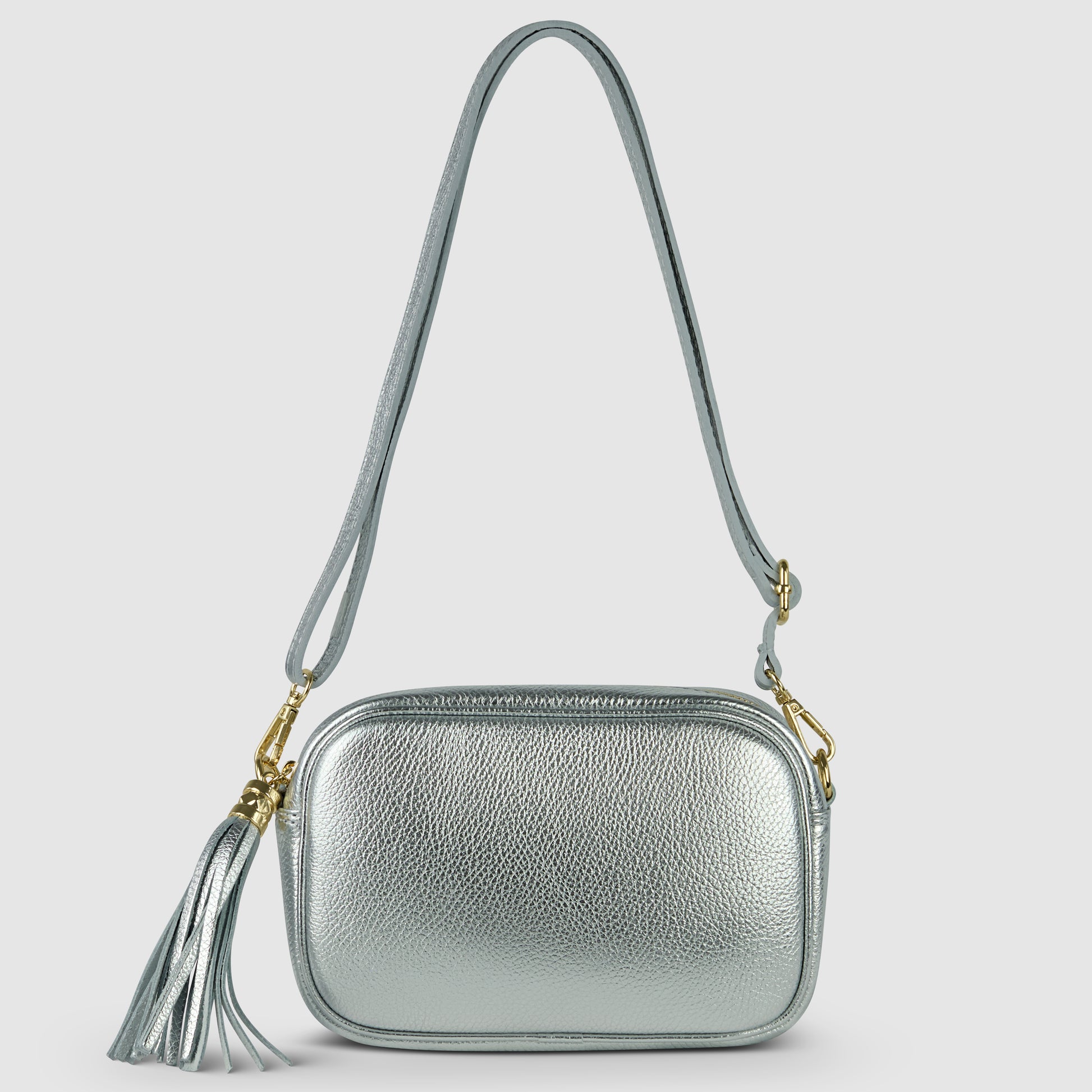 The body is made from natural calfskin with a subtle shine — luster calf leather. The smooth, lightly grained surface has a gentle metallic finish that highlights the richness of the material. It reflects the Florentine leatherworking legacy, combining sophistication with tactile appeal.