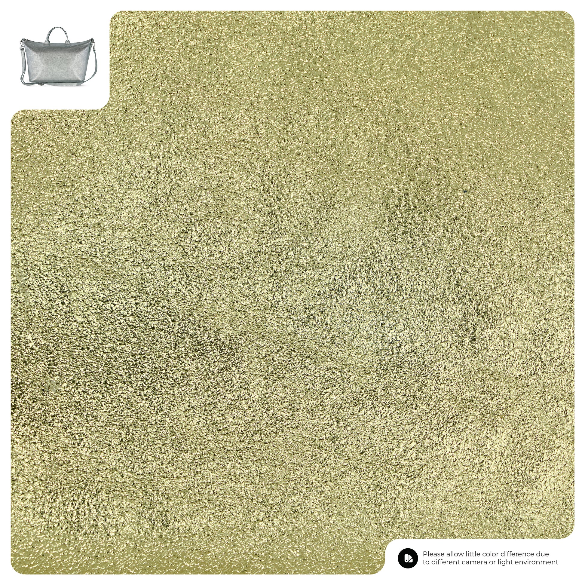 Made from genuine suede with a laminated metallic finish, it’s embossed with a bold woven pattern. The sculptural grid design adds tactile richness and light-reflective brilliance. Rooted in Florentine traditions, the material reinterprets heritage through a modern lens.