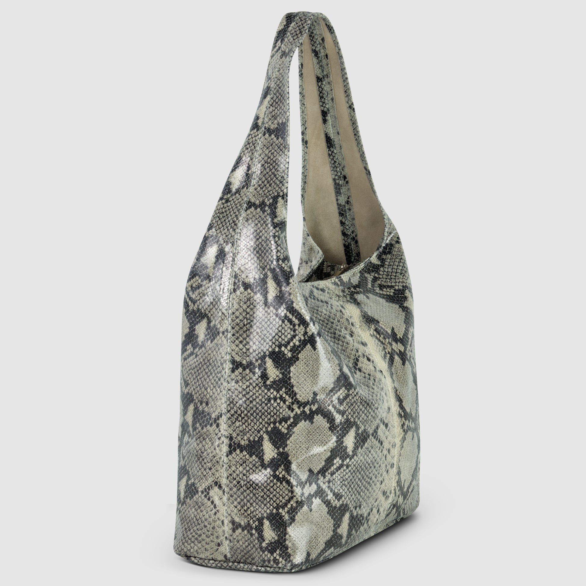 If you’re looking for a statement bag with character that doesn’t sacrifice comfort—this is it. The refined python embossing paired with a soft shape makes it a symbol of effortless style with a bold edge of Italian elegance.