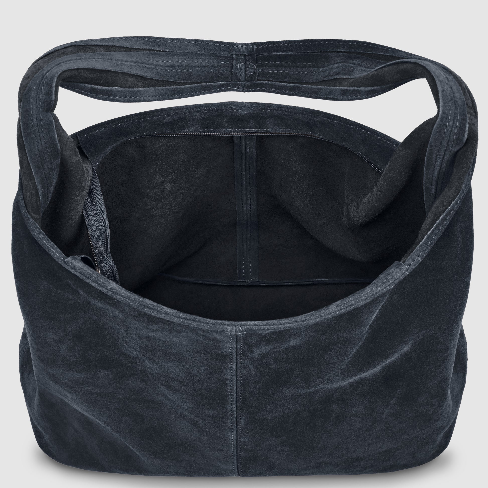 Inside, there’s no lining—just raw suede and space. A spacious single compartment easily holds your daily essentials, while the natural interior ensures that no two bags are exactly alike.