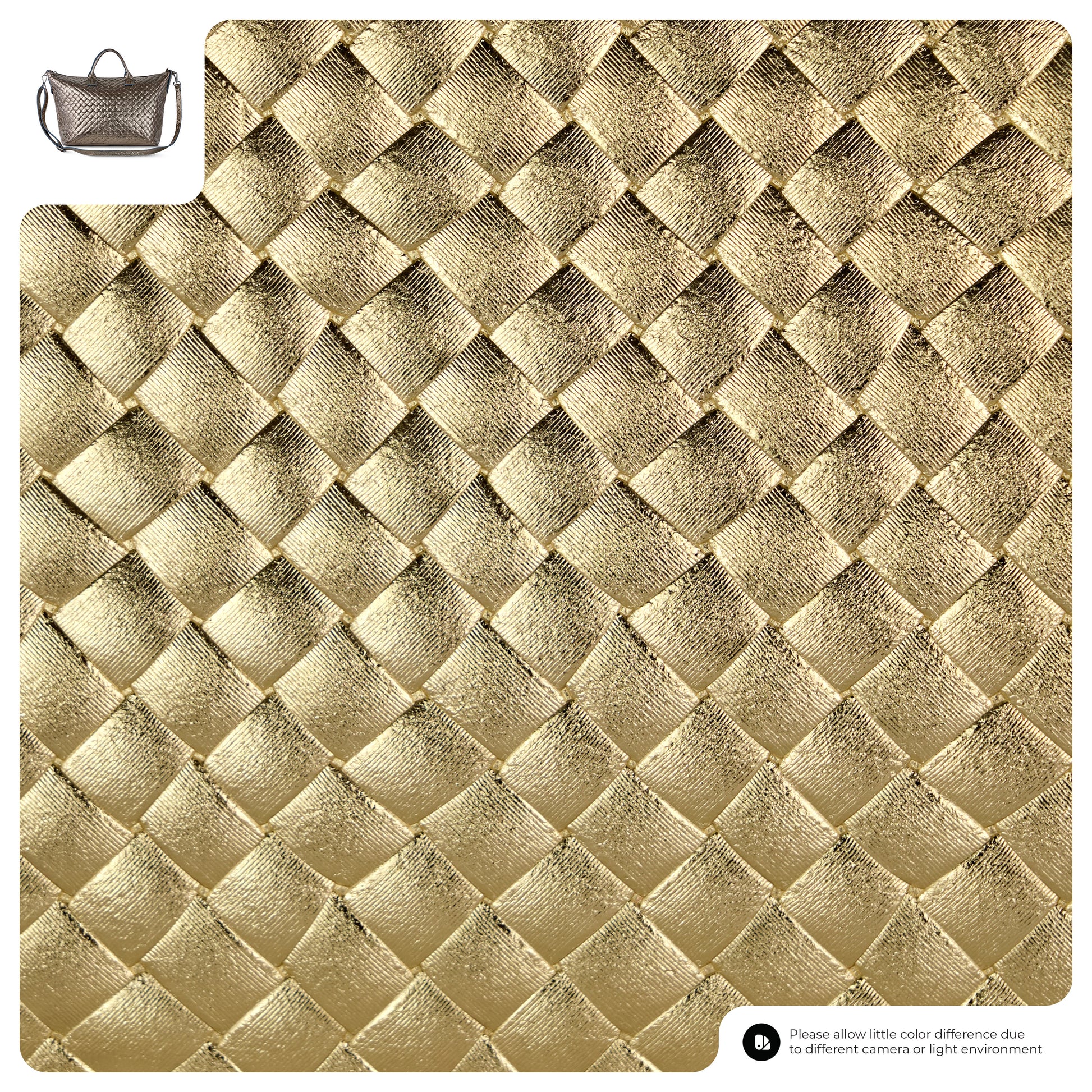 Crafted from genuine suede with a laminated finish, the surface glows with a soft sheen. Embossed in a diagonal woven pattern, the texture recalls artisanal weavework with a modern edge. Rooted in Florentine leathercraft traditions, this material blends heritage with innovation.